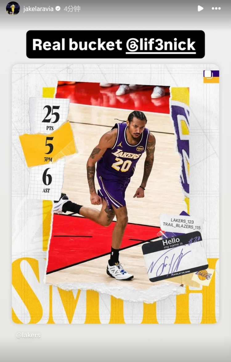 赛后,拉拉维亚转发了小尼克-史密斯的海报,并写道:“真正的篮球手。”