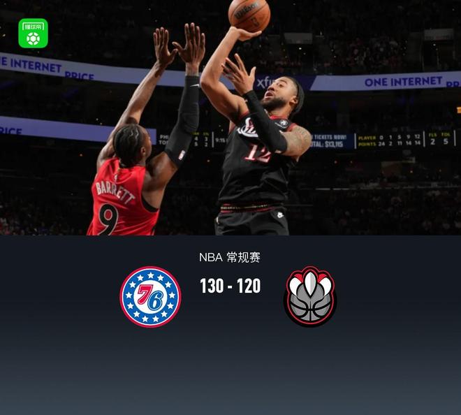 北京时间11月9日,NBA常规赛76人主场迎战猛龙。首节猛龙依靠强势进攻火力取得10分领先,次节76人轰出35-20反超比分,半场76人68-63猛龙,下半场76人保持优势,最终76人130-120击败猛龙。